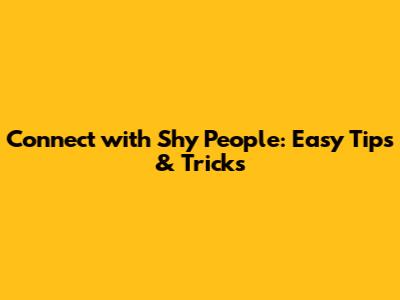Connect With Shy People: Easy Tips & Tricks