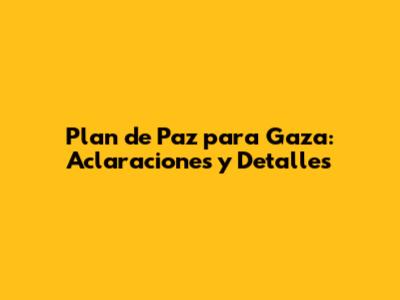 Plan De Paz Para Gaza: Aclaraciones Y Detalles